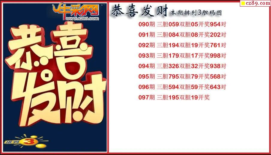 > 2026097期P3恭喜发财胆码图